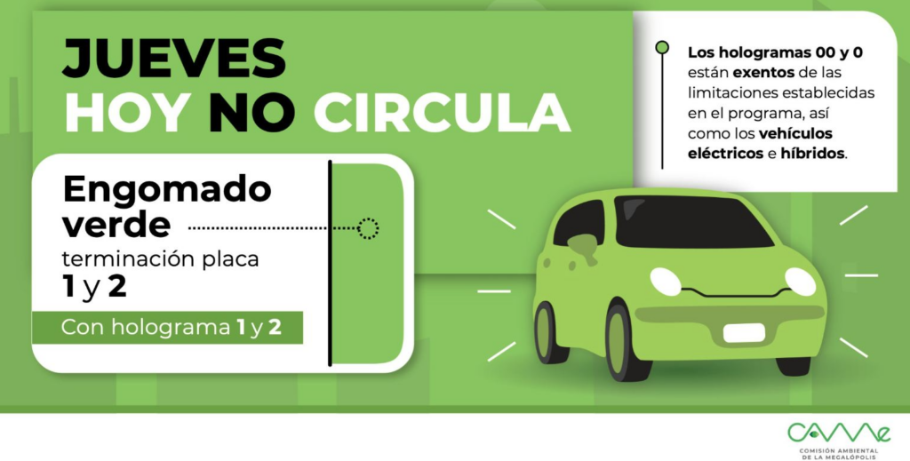 Este jueves 26 de febrero no podrán circular los automóviles con holograma 1 y 2 que cuenten con engomado verde y terminación de placa 1 y 2. En contraste, los vehículos con holograma 0 y 00 están autorizados para transitar, sin importar el color del engomado, siempre que la placa no finalice en 1 o 2.