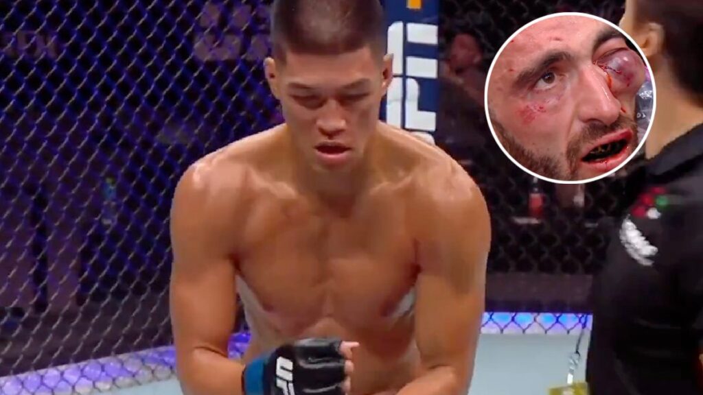 Al finalizar el primer asalto, el estadounidense ya había registrado tres knockdowns. En el segundo episodio, sumó otros tres, para un total de seis, rompiendo el récord anterior de cinco en una sola pelea. La presión constante y su volumen de golpes —más de siete impactos significativos por minuto— terminaron por provocar una lesión terrorífica en el rostro del local.