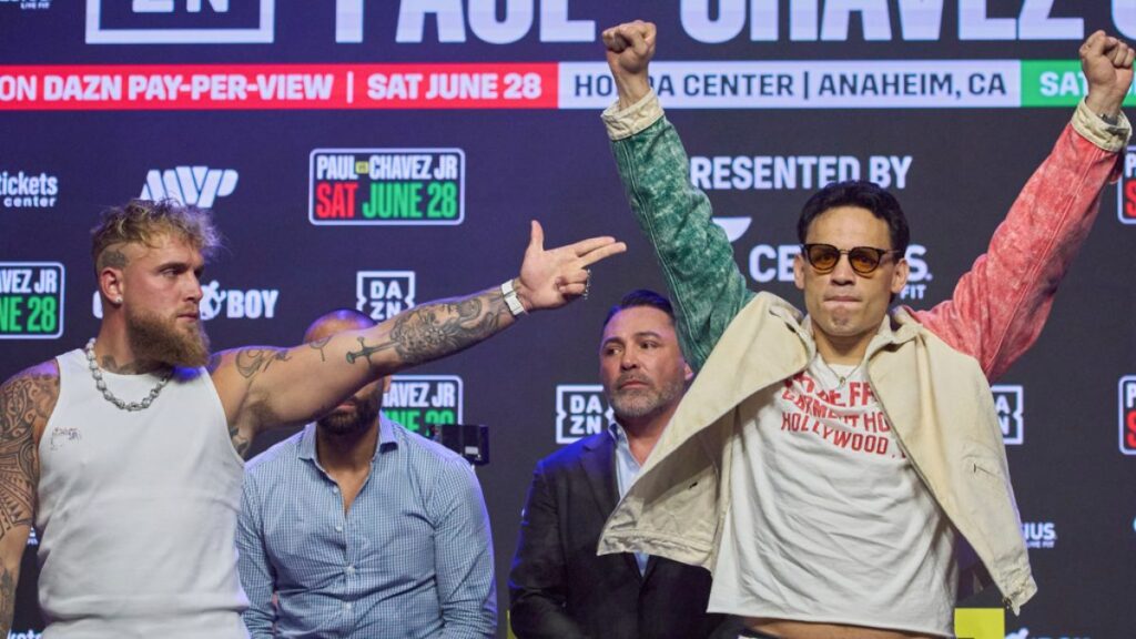 Jake Paul y Julio César Chávez Jr. se enfrentarán este sábado 28 de junio en una pelea de peso crucero dentro de una cartelera organizada por Golden Boy Promotions y MVP Promotions. De acuerdo con información de la Comisión Atlética del Estado de California (CSAC), la bolsa garantizada para el estadounidense será de 300 mil dólares, mientras que el mexicano percibirá 750 mil.