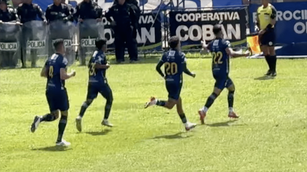 El encuentro comenzó parejo, con ambos equipos disputando la posesión del balón en el mediocampo. Sin embargo, Cobán Imperial fue tomando el control progresivamente, generando peligro por los costados a través de Steven Paredes. La apertura del marcador llegó temprano, al minuto 11, cuando Blady Aldana aprovechó una jugada confusa en el área y, desde el suelo, conectó de cabeza para marcar el 1-0.