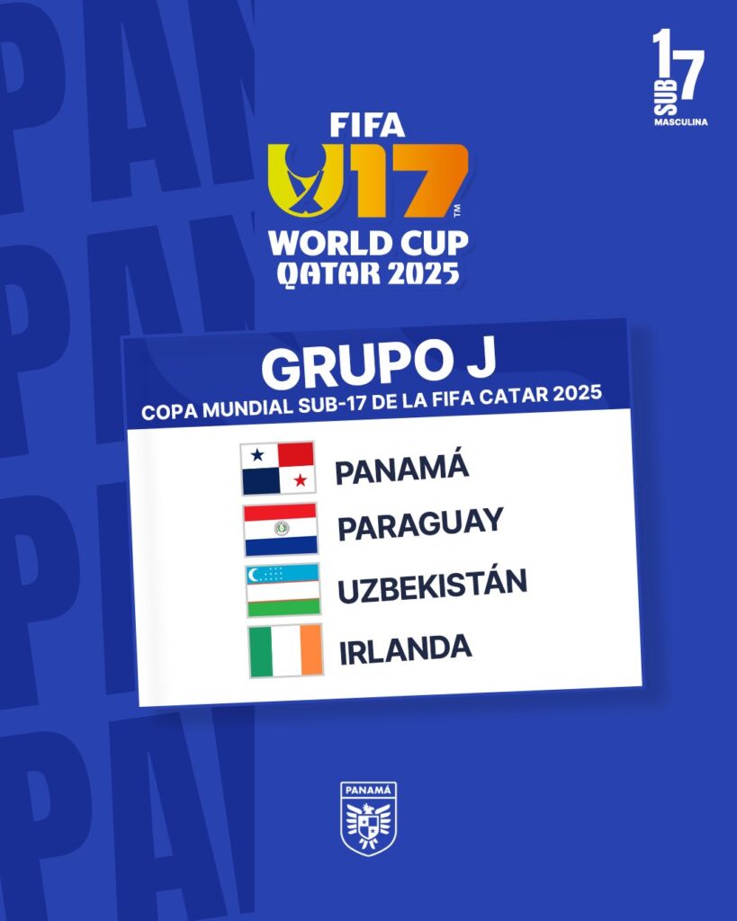 El sorteo oficial de la Copa Mundial Sub-17 de la FIFA se celebró este domingo 25 de mayo en Doha, Qatar, dejando definidos los grupos para el torneo que se jugará entre el 3 y el 27 de noviembre. La selección Sub-17 de Panamá, dirigida por Leonardo Pipino, integrará el Grupo J junto a Paraguay, Uzbekistán e Irlanda.
