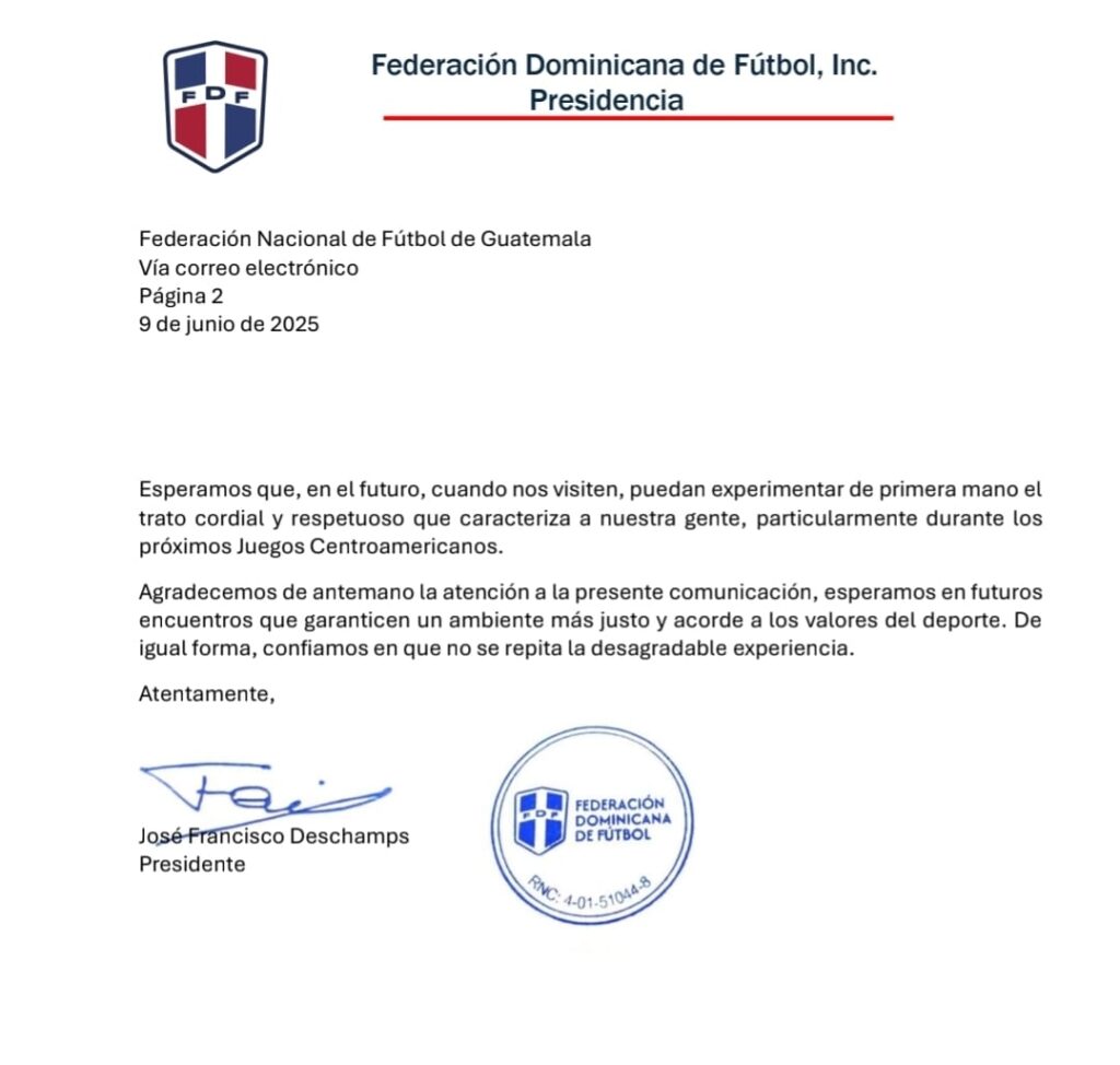 Más allá de la denuncia puntual, la misiva insiste en que el objetivo de la Federación Dominicana es continuar fortaleciendo los lazos de cooperación deportiva con Guatemala y con el resto de los países de la región. No obstante, subrayan que situaciones como las vividas deben ser tomadas en cuenta para que no se repitan en futuras competiciones.