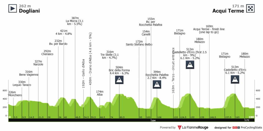 Después de lo que fue la disputa de La Vuelta a España y el Mundial de Ciclismo de Ruta, por estos días se están corriendo unas clásicas que completan el calendario UCI (Unión Ciclística Internacional) en territorio europeo. El turno para este jueves 9 de octubre fue para Gran Piamonte, una carrera de 179 kilómetros de recorrido entre Dogliani y Acqui Terme y con 4 puertos de escalada.