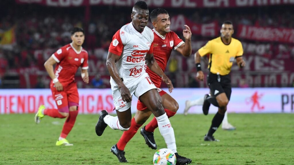 41′ | Algunos jugadores de Santa Fe pedían falta sobre Palacios, pero claramente no había nada que revisar.