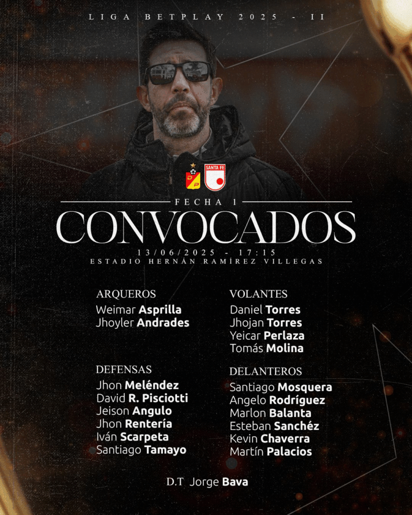 Independiente Santa Fe comenzará su camino hacia la estrella 11 este domingo visitando a Deportivo Pereira en el Estadio Hernán Ramírez Villegas a las 05:15 de la tarde. El profesor Jorge Bava decidió darle descanso a jugadores como Elvis Perlaza, Andrés Mosquera Marmolejo, Emanuel Olivera, Víctor Moreno y otro par, quienes sumaron más minutos en la obtención de la décima estrella. Hugo Rodallega no fue convocado por lesión y Christian Mafla porque debe pagar una fecha de sanción por acumulación de amarillas.