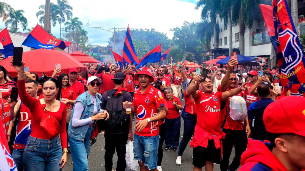 3:45 p.m. Muy colorido el alrededor del Atanasio. Es una avalancha de rojo y azul. Medellín es una fiesta y esto se puede extender con la séptima.