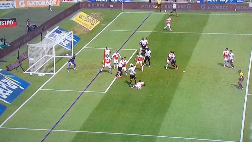Sin embargo el delantero de Llaneros estaba claramente adelantado. El juez central esperaba el aval del VAR para dar la anotación, Luis Picón y Luis Trujillo revisaron la acción, dieron el sí para que el juego siguiera con el 0-1, pero en la imagen que entregaron en la transmisión, Miranda se veía levemente adelantado.