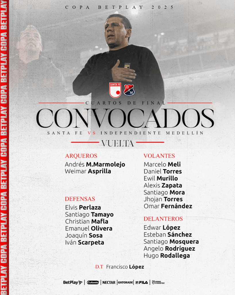 Convocatoria de Santa Fe para recibir a Medellín: