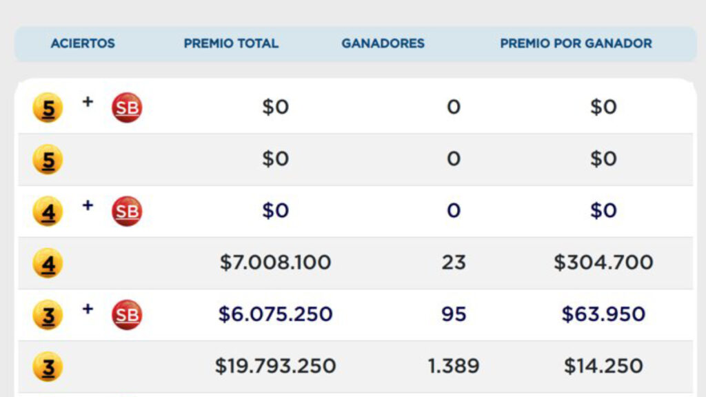 - Números ganadores: 08 – 18 – 21 – 34 – 40 – 13
