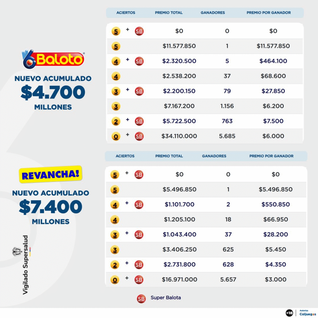 Además, el apostador puede escoger participar únicamente en Baloto o pagar un valor adicional para optar también en el sorteo de revancha. Las dos modalidades se sortean por separado y llevan premios independientes. Cada vez que no hay ganador del premio mayor, el acumulado de cara al sorteo siguiente crece, lo que hace a esta lotería cada vez más cautivadora.