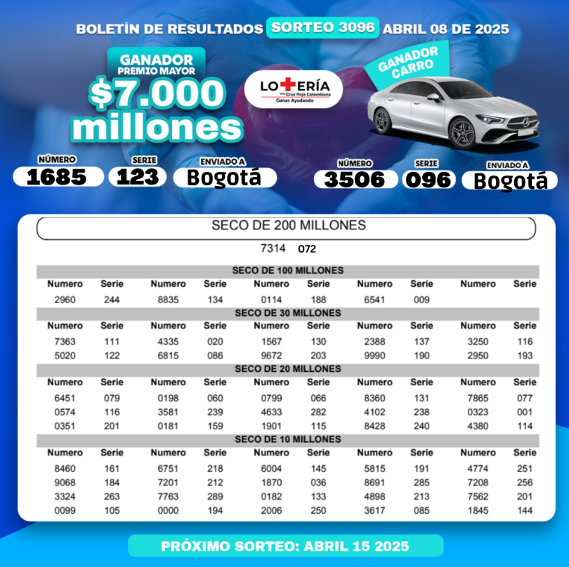 • Premio mayor: $7.000 millones de pesos.