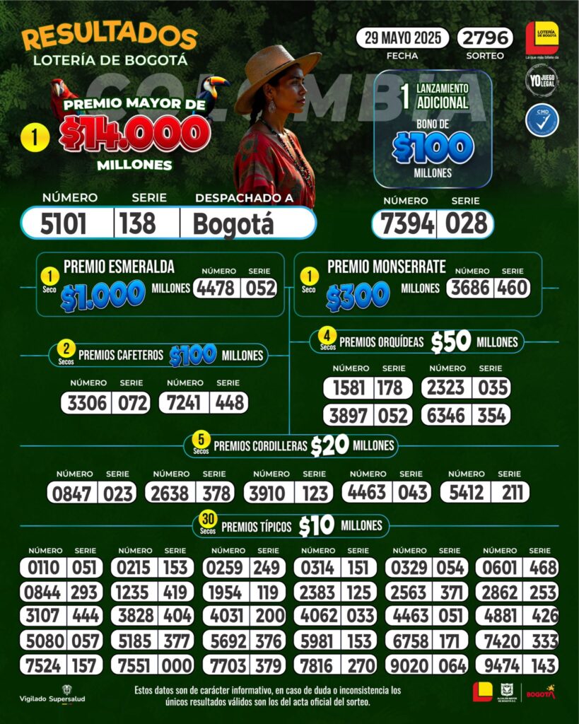 Resultados de las loterías de Bogotá, Quindío y Chontico Noche: números que cayeron y ganadores | 29 de mayo de 2025