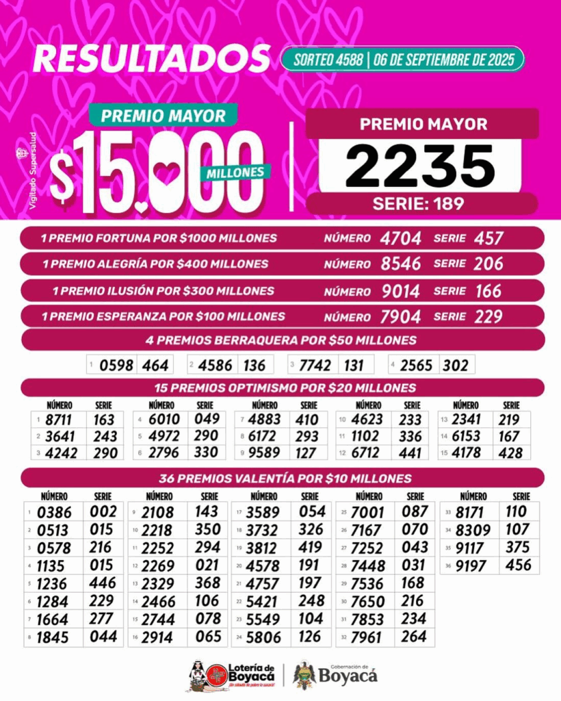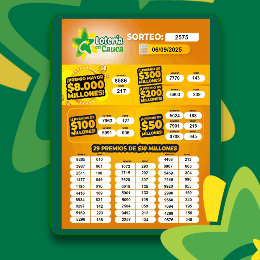 Resultados de las loterías de Boyacá y Cauca: números que cayeron y ganadores | 6 de septiembre de 2025