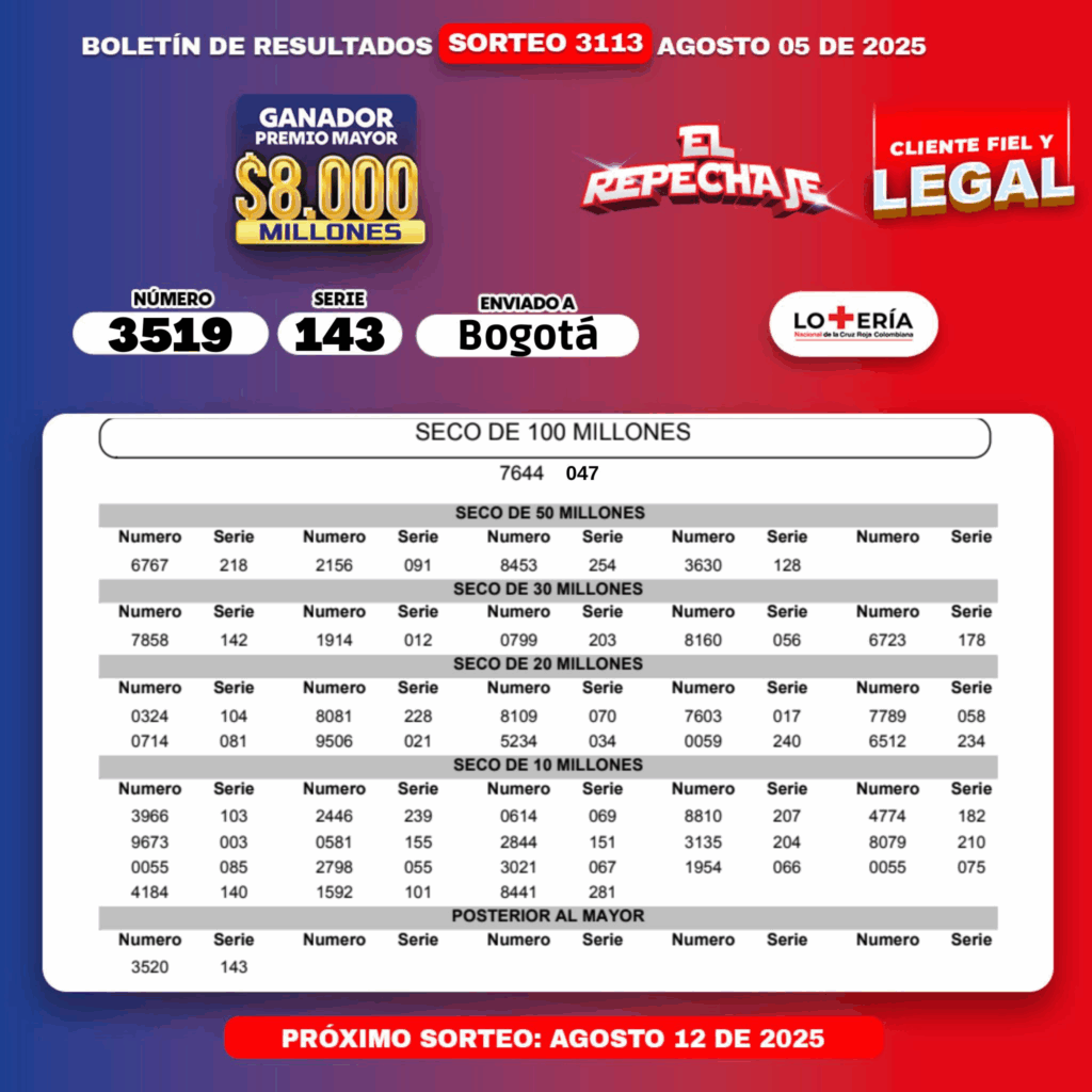 - Premio mayor: $8.000 millones de pesos.