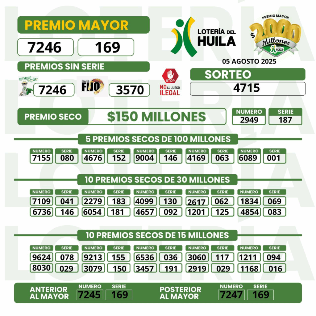 Resultados de las loterías de Cruz Roja, Huila y Chontico Noche: números que cayeron y ganadores | 5 de agosto de 2025