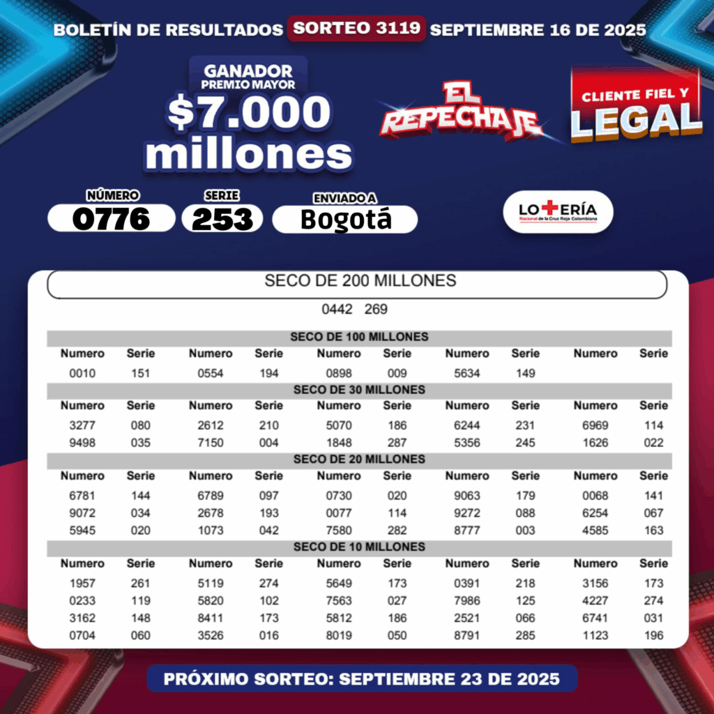 Resultados de las loterías de Cruz Roja y Huila: números que cayeron y ganadores | 16 de septiembre de 2025