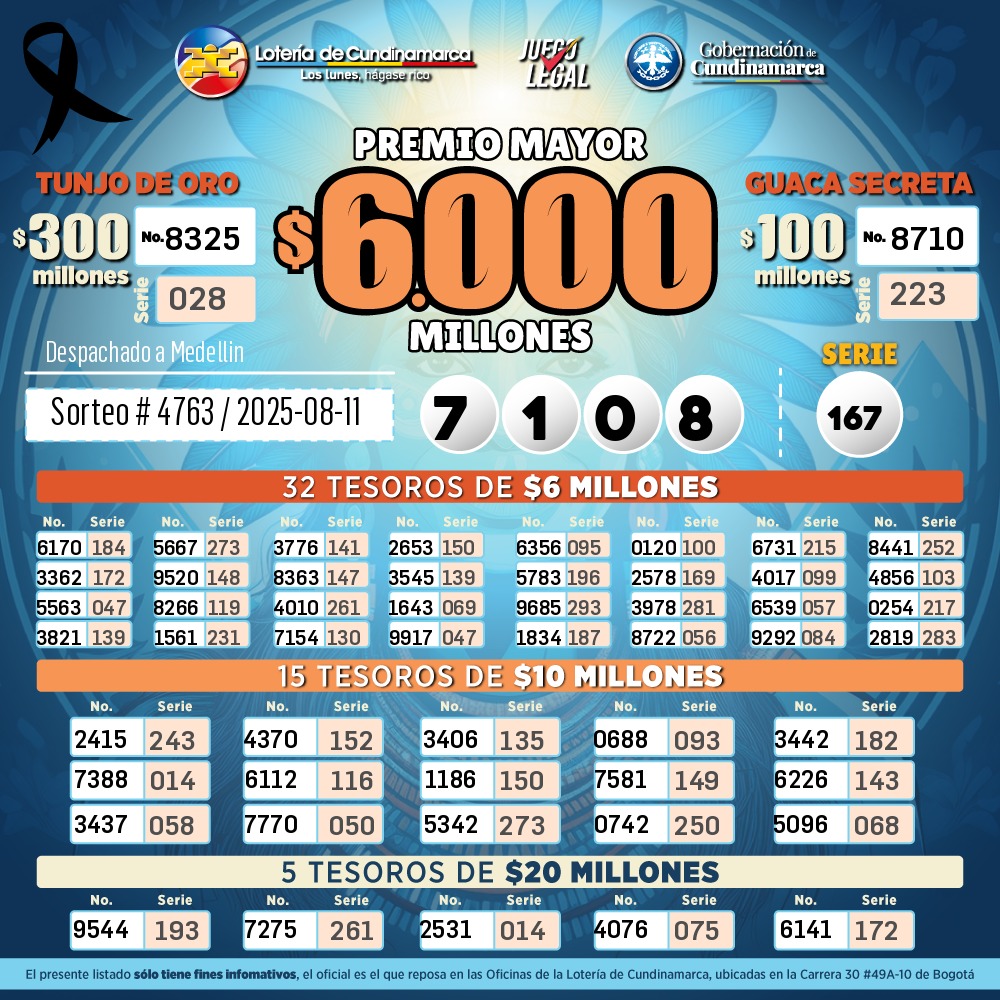 Resultados de las loterías de Cundinamarca, Tolima y Chontico Noche: números que cayeron y ganadores | 11 de agosto de 2025