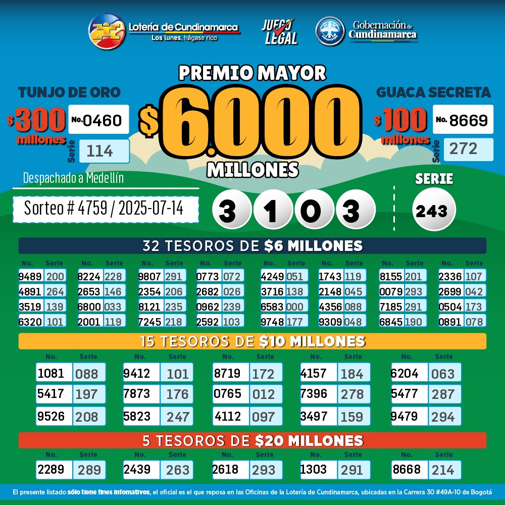 Resultados de las loterías de Cundinamarca, Tolima y Chontico Noche: números que cayeron y ganadores | 14 de julio de 2025