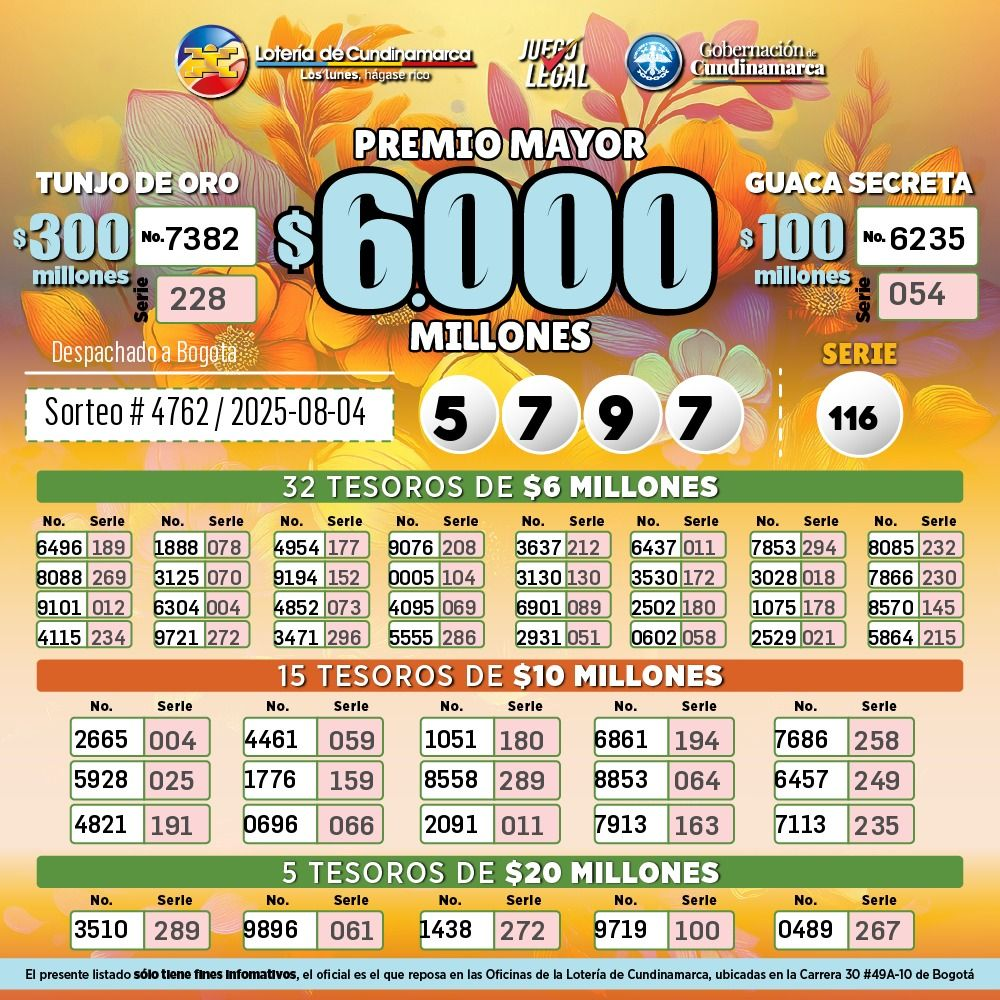 - Premio mayor: $6.000 millones de pesos.