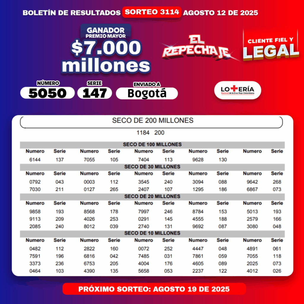 Resultados de las loterías de Huila, Cruz Roja y Chontico Noche: números que cayeron y ganadores | 12 de agosto de 2025