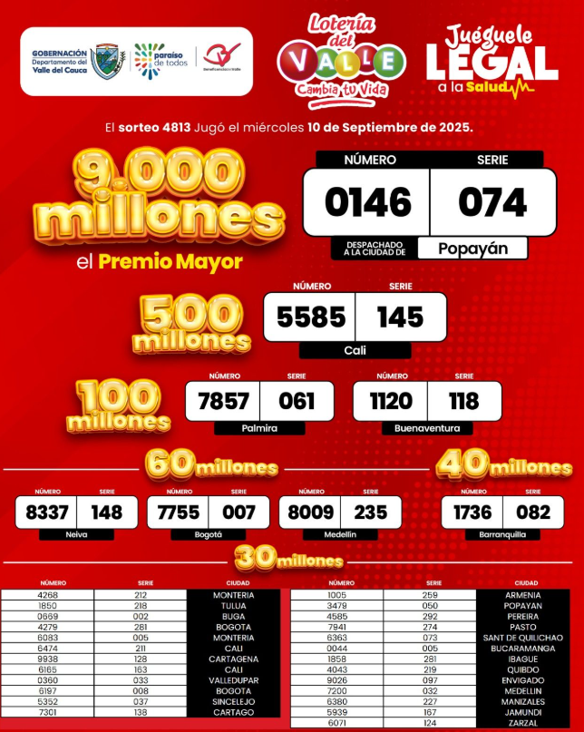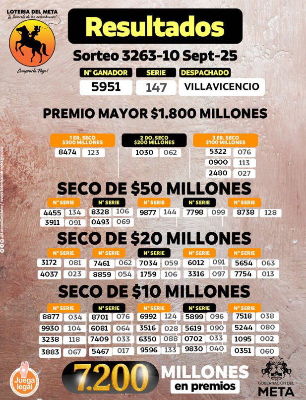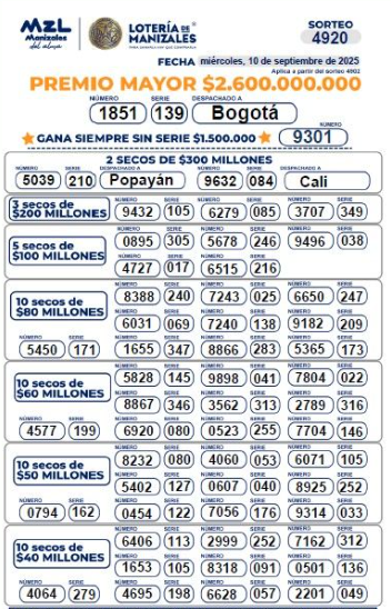 Resultados de las loterías de Manizales, Meta y Valle: números que cayeron y ganadores | 10 de septiembre de 2025