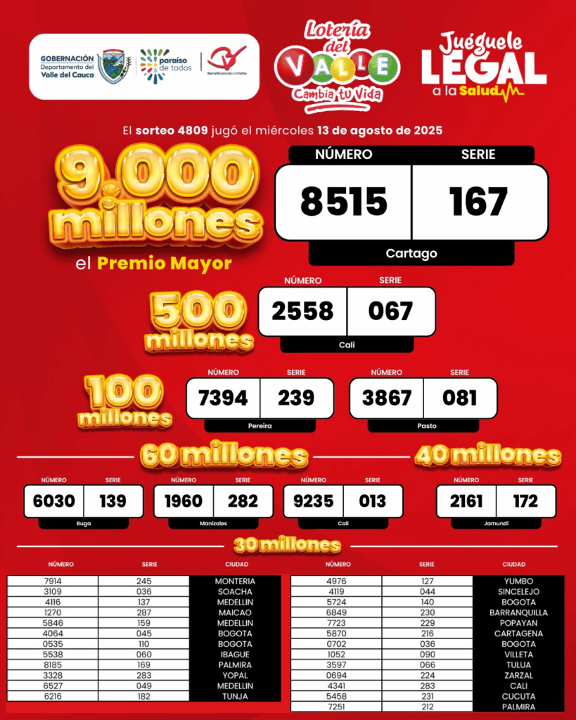 Resultados de las loterías de Valle, Meta, Manizales y Chontico Noche: números que cayeron y ganadores | 13 de agosto de 2025