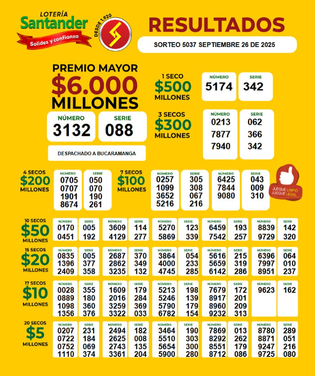 Resultados de las loterías Medellín, Santander y Risaralda: números que cayeron y ganadores | 26 de septiembre de 2025