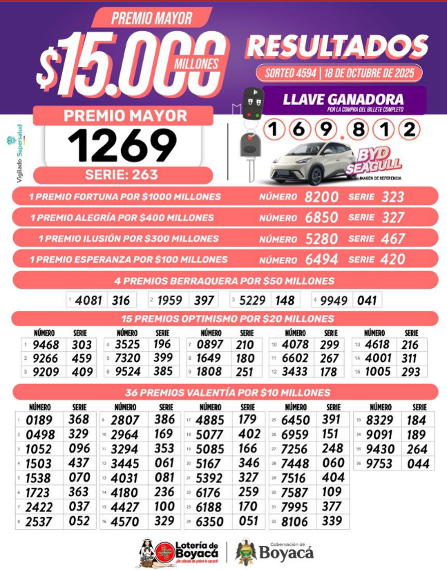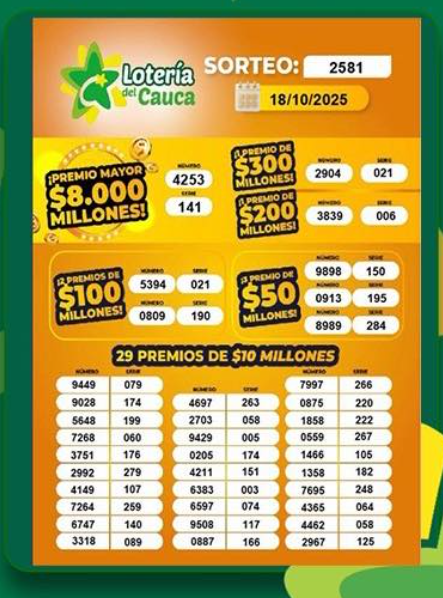 Resultados de loterías Boyacá y Cauca: números que cayeron y ganadores | 18 de octubre de 2025