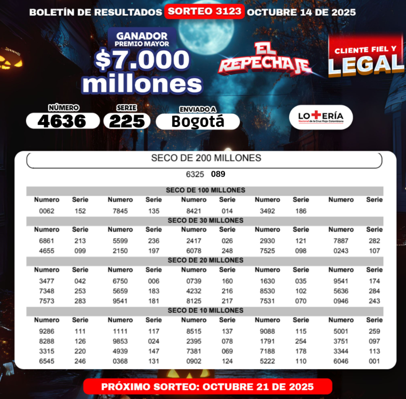 Consulte los números ganadores de los recientes sorteos este martes, 14 de octubre de 2025.