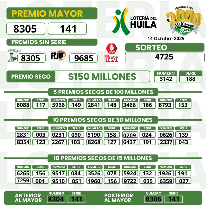 Resultados de las loterías de la Cruz Roja y Huila: números que cayeron y ganadores | 14 de octubre de 2025