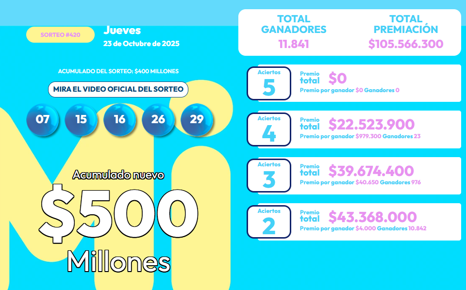 - Nuevo acumulado: $500 millones de pesos.