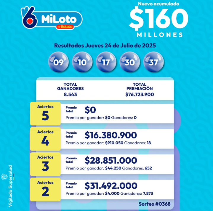 Resultados de MiLoto de este jueves 24 de julio de 2025: números ganadores de hoy