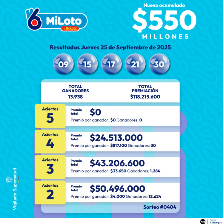 Resultados de MiLoto de este jueves, 25 de septiembre de 2025: números ganadores de hoy
