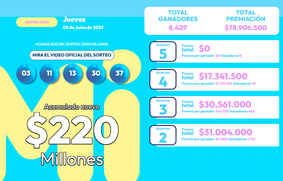 Resultados de MiLoto de este jueves 5 de junio de 2025: números ganadores de hoy