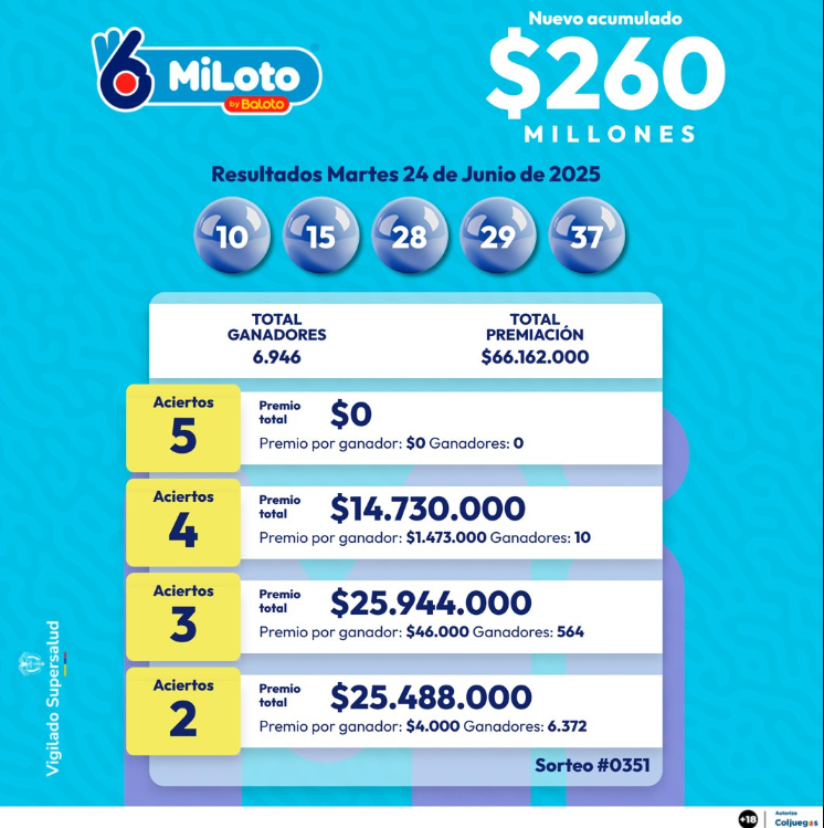 - Nuevo acumulado: $260 millones de pesos.
