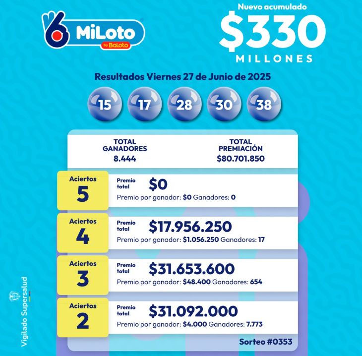 Resultados de MiLoto de este viernes 27 de junio de 2025: números ganadores de hoy