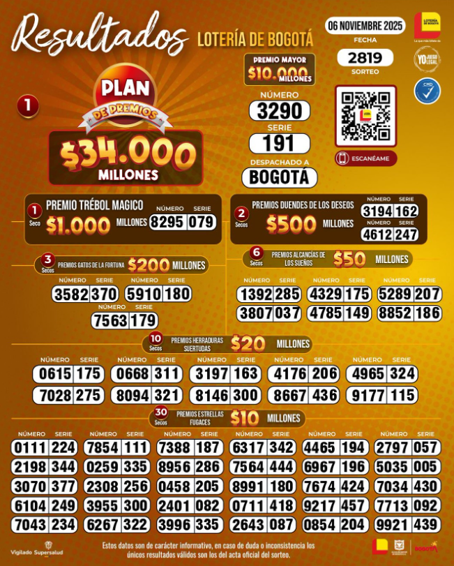 Resultados loterías y chances de Colombia: Bogotá y Quindío; números que cayeron | 6 de noviembre de 2025