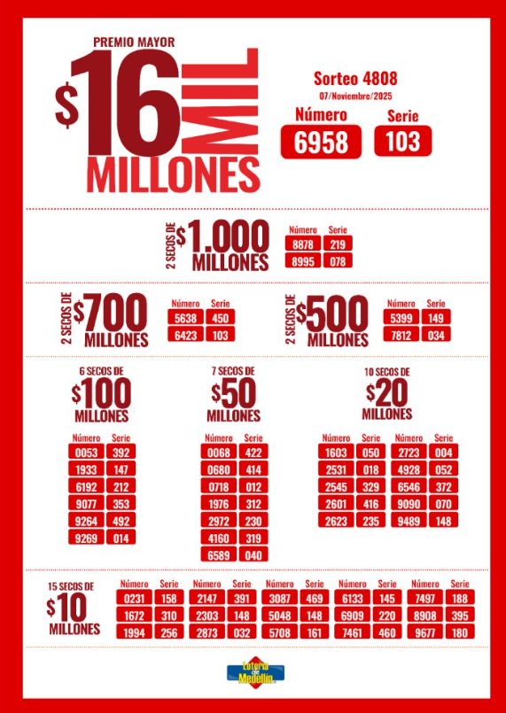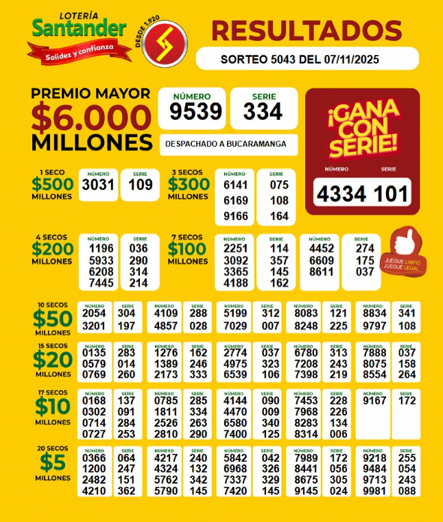 Resultados loterías y chances de Colombia: Medellín, Santander y Risaralda; números que cayeron | 7 de noviembre de 2025