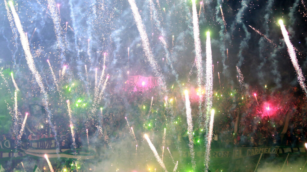 ¡IMPRESIONANTE LA HINCHADA DEL MEDELLÍN! Siguen los fuegos artificiales por parte de la hinchada del 'Poderoso'. #FINALCOPAxWIN 🔴🔵🏆 pic.twitter.com/VXYZElwWaJ