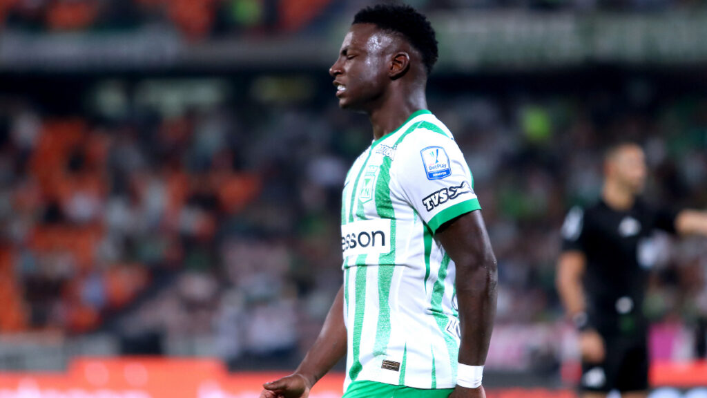Marino Hinestroza (23 anos) pelo Atlético Nacional em 2025: