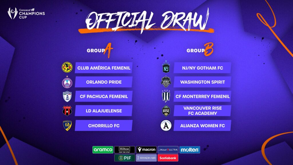 América y Pachuca comparten grupo en la Concacaf W Champions Cup; Gotham lidera el Grupo B
