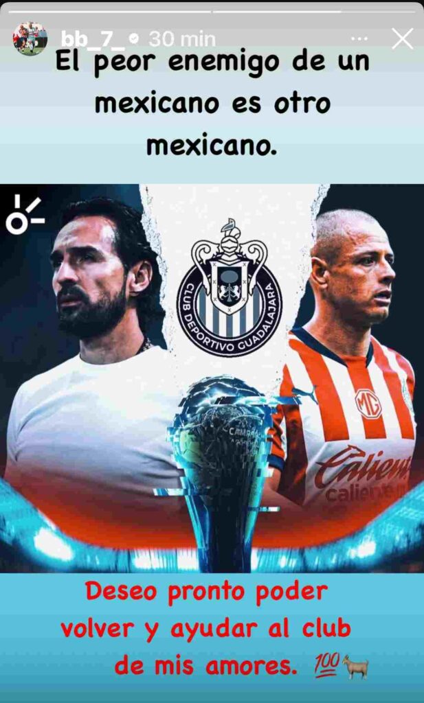 Bautista fue quien apenas consumada la no participación de Chivas para el Play In, escribió en una historia de Instagram: “El peor enemigo de un mexicano es otro mexicano”, pero incluso va más allá y afirma que su deseo es regresar a Verde Valle en el futuro: “Deseo pronto volver y ayudar al club de mis amores”.