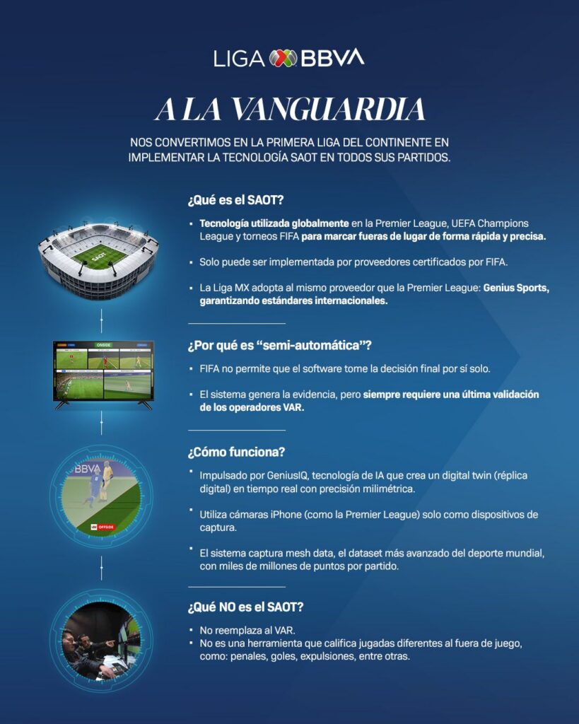 La Liga MX aclaró que el SAOT no sustituye al VAR ni se utiliza para evaluar otras acciones como penales o sanciones disciplinarias. Su uso está limitado exclusivamente a jugadas de fuera de juego y forma parte de un proceso continuo de modernización del arbitraje en el fútbol mexicano.