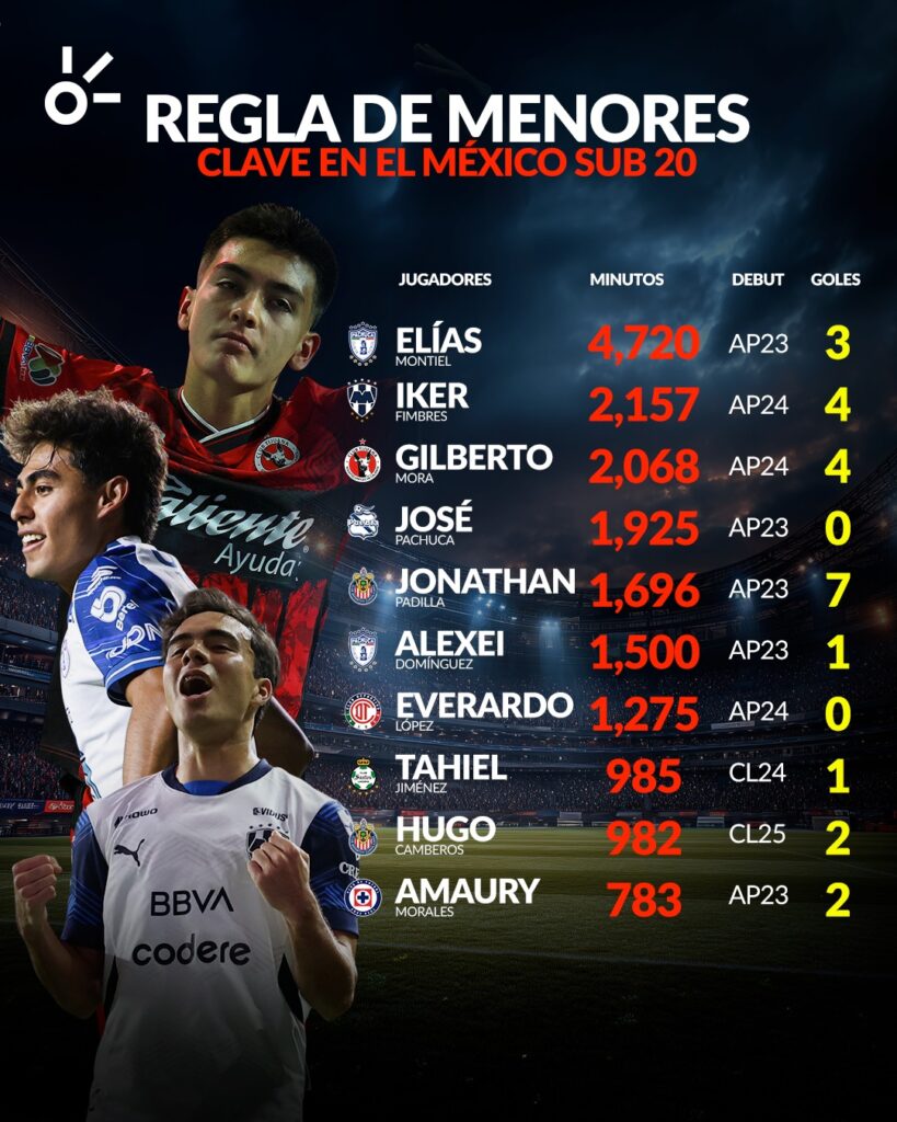 En los últimos años, la Liga MX apostó con fuerza por el desarrollo de talento joven, impulsada por la implementación de la llamada Regla de Menores. Esta medida, aplicada en los torneos más recientes, comenzó a mostrar resultados, especialmente en la conformación y desempeño de la selección mexicana sub 20