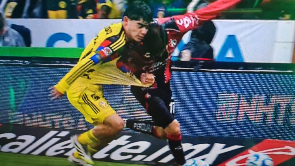 El ‘Gato’ Ortiz sancionó un penalti por mano dentro del área de los Rojinegros tras un centro de Cristian Borja que Gaddi Aguirre cortó en una barrida. La jugada se revisó de forma silenciosa, ya que no se llamó al silbante a checarla en la pantalla, lo que permitió que las Águilas se adelantaran en el marcador con gol de Brian Rodríguez al minuto 19