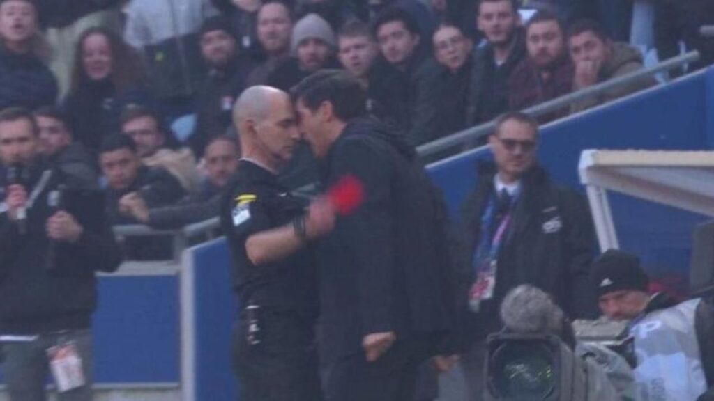 Luego de un penal que no se le concedió al Olympique, Fonseca encaró al colegiado, que no dudó en sacar la tarjeta roja directa para el técnico por “actitud intimidatoria”: “Se abalanzó sobre mí con una actitud intimidatoria y decidí expulsarle directamente. Siguió fuera de control“, declaró el árbitro galo para L’Equipe.