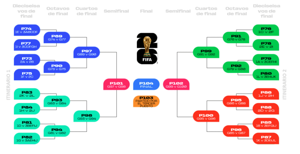 “Para garantizar el equilibrio competitivo, se han establecido dos cuadros separados hasta semifinales en el calendario de partidos. Con el fin de conseguir una distribución equilibrada de los equipos, se han aplicado las siguientes restricciones en el sorteo de las cuatro primeras selecciones de la Clasificación Mundial Masculina FIFA/Coca-Cola: la selección líder de la clasificación (España) y la segunda mejor clasificada (Argentina) se asignarán de forma aleatoria a cuadros opuestos. Se aplicará el mismo principio en el caso de la tercera y la cuarta clasificadas (Francia e Inglaterra, respectivamente). De este modo, si las dos primeras selecciones de la clasificación mundial acabaran la primera fase en el primer puesto de sus respectivos grupos, no se enfrentarían antes de la final“, lee el procedimiento oficial publicado por la FIFA.