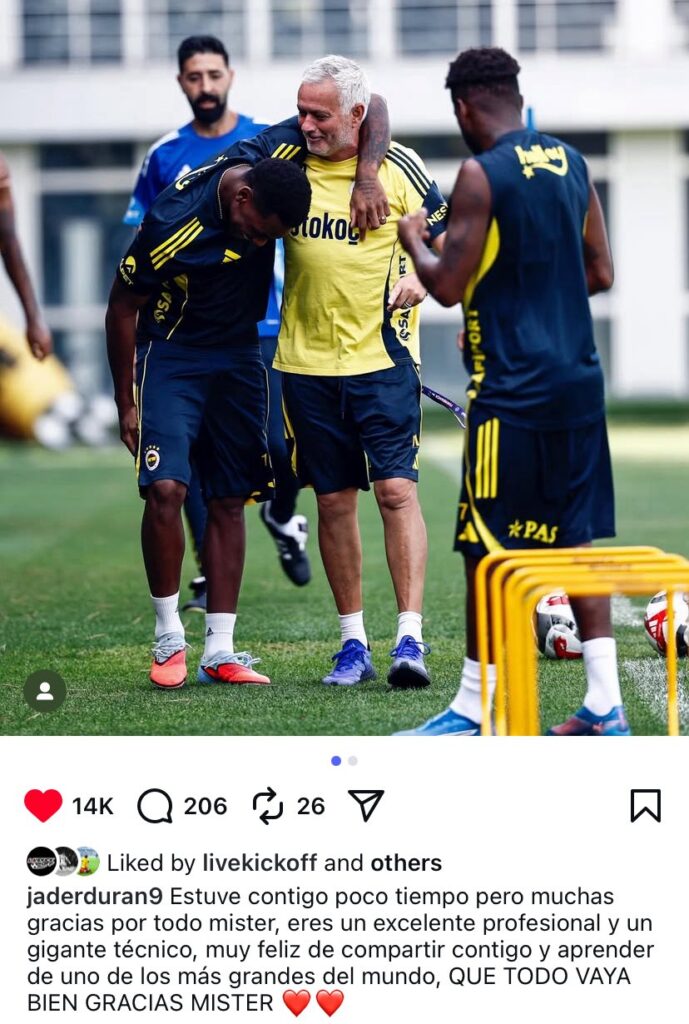 Aunque se rumoreaba sobre posibles tensiones entre el delantero y Mourinho, el propio Durán desmintió cualquier conflicto. “Estuve contigo poco tiempo, pero muchas gracias por todo, mister. Eres un excelente profesional y un técnico gigante, muy feliz de compartir contigo y aprender de uno de los más grandes del mundo”, afirmó el jugador.