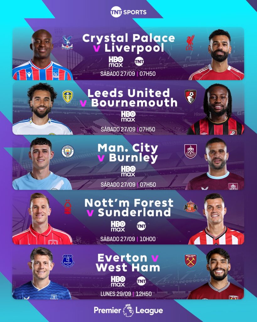 - M. City vs Burnley – sábado 27 de septiembre, 08:00
