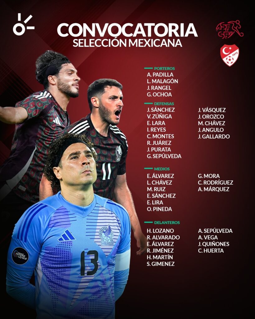 En la lista destacan jugadores veteranos y habituales como Edson Álvarez y Johan Vásquez, el regreso de futbolistas como Henry Martín, Guillermo Ochoa e Hirving Lozano, quien iba a volver en la última convocatoria, pero se la perdió por lesión. También brillan algunas inclusiones sorpresa como las de Emilio Lara, Gilberto Mora y Mateo Chávez, quienes tienen la oportunidad de ganarse un sitio en el proceso mundialista.